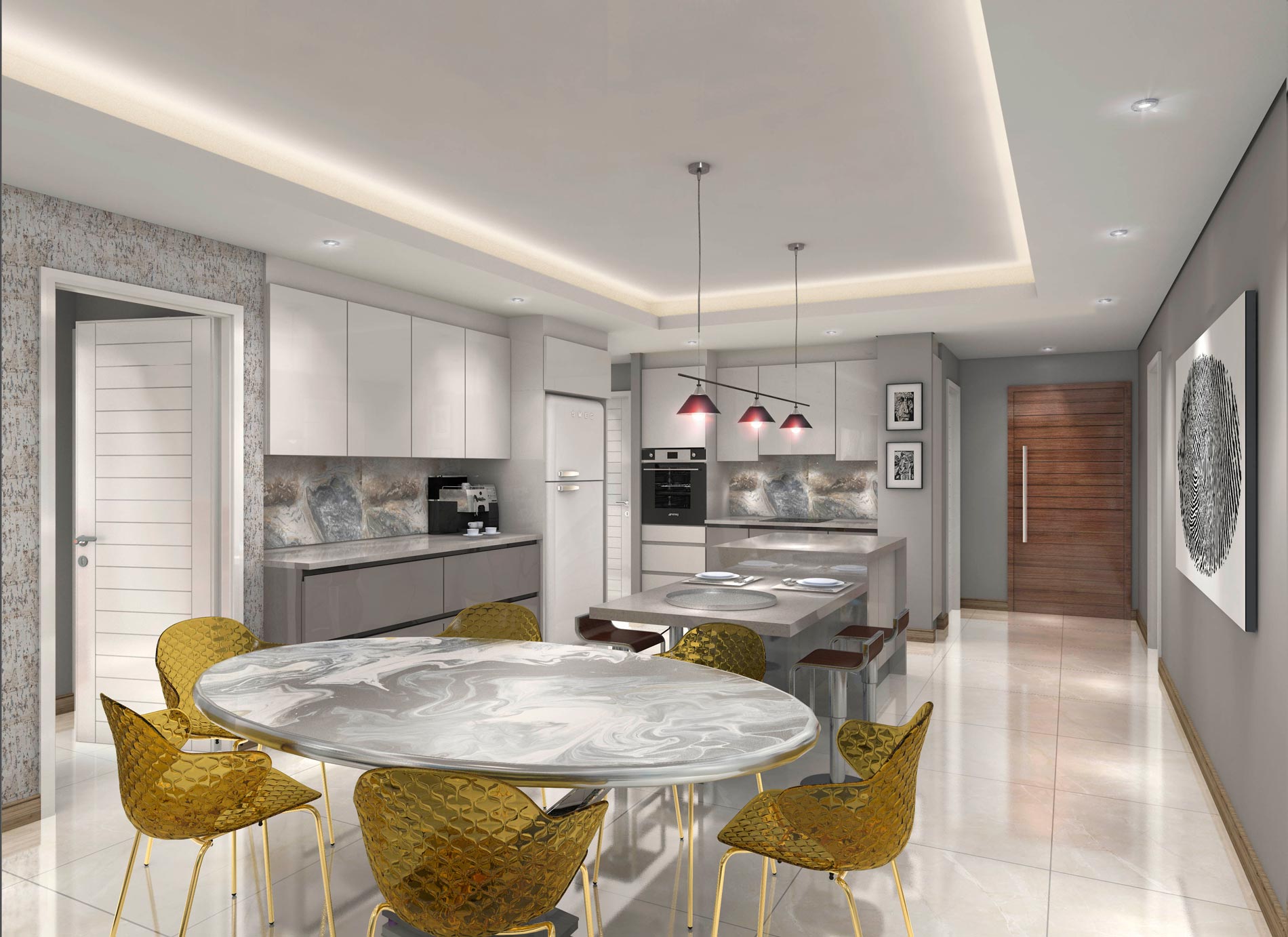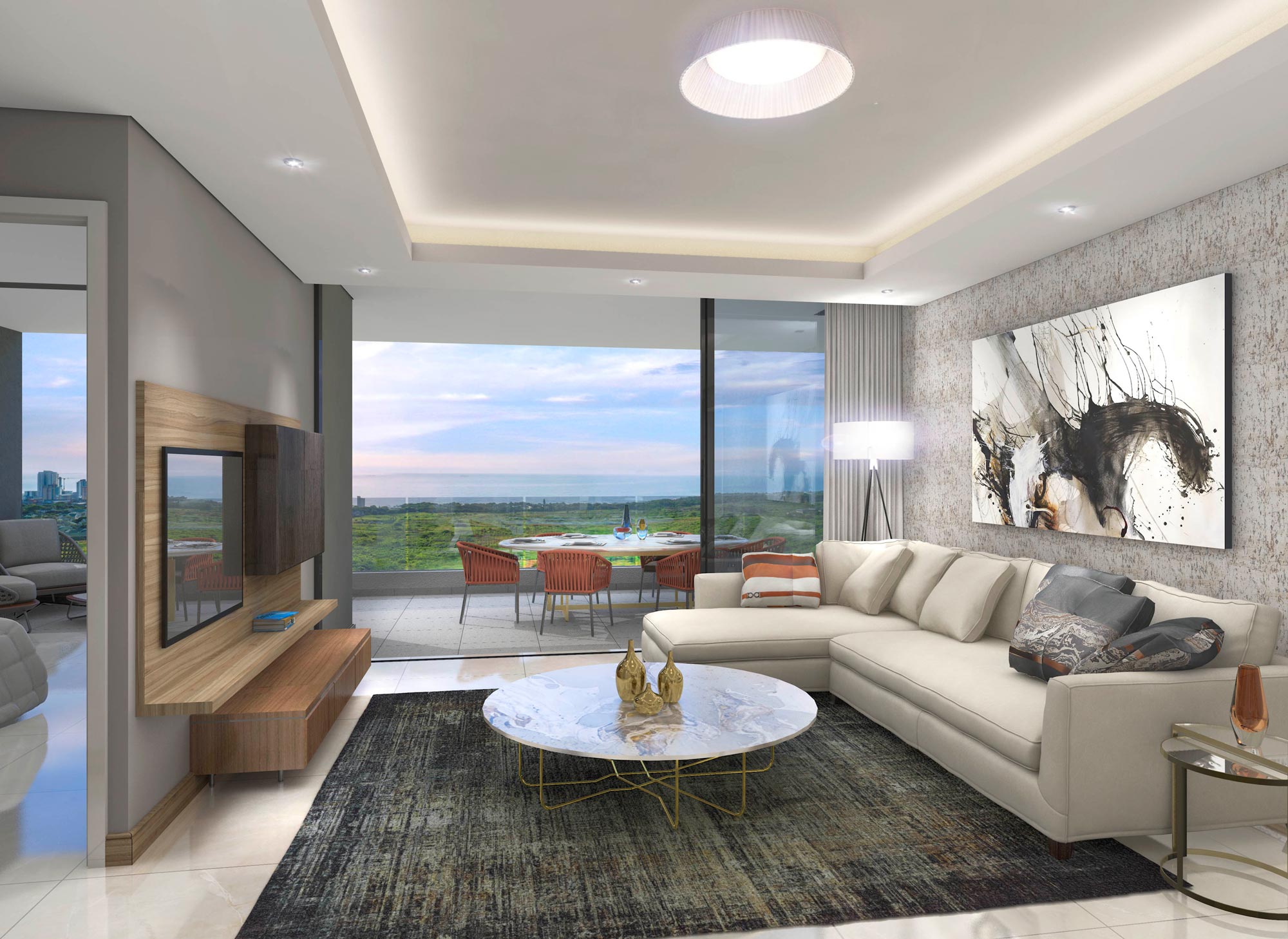 Each apartment will be avalible in three moods to suit individual preferences. The apartments each offer fully fitted air-conditioning with suspended ceilings and bulkheads, designer kitchens, high-end Smeg appliances and imported grade 1 floor and wall tiles.